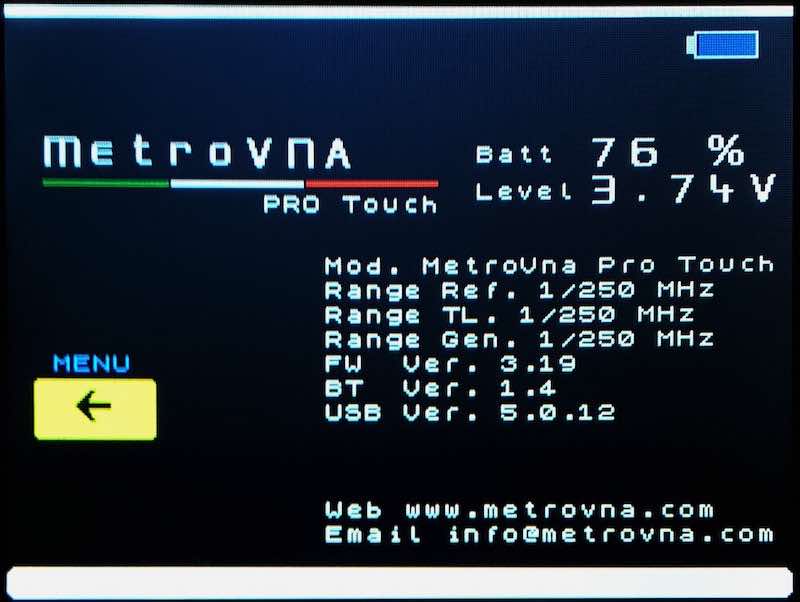 This physically small Vector Network Analyser works great as a “stand-alone” instrument thanks to its big color display and internal rechargeable battery. Connect the MetroVNA to a PC or Mac via USB or Bluetooth for a more detailed readout and extend functionality.