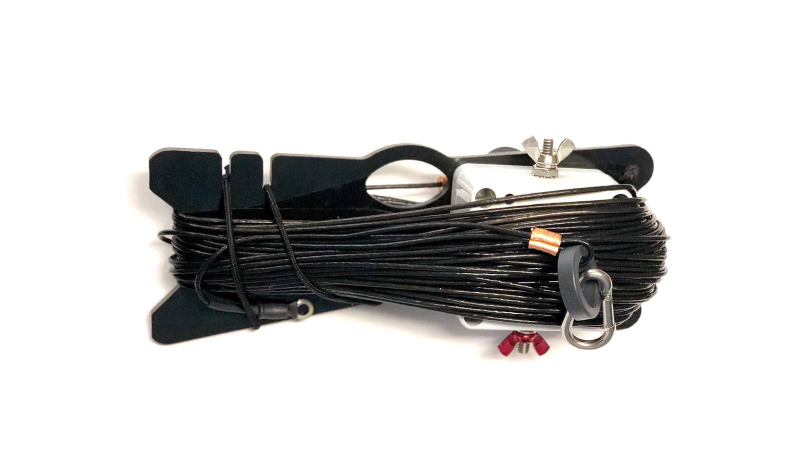 The EMCOMM III Portable antenna is comprised of a matching transformer, a 73 foot antenna wire on a line winder, and a 25 foot counterpoise – making a highly portable and effective HF antenna system.