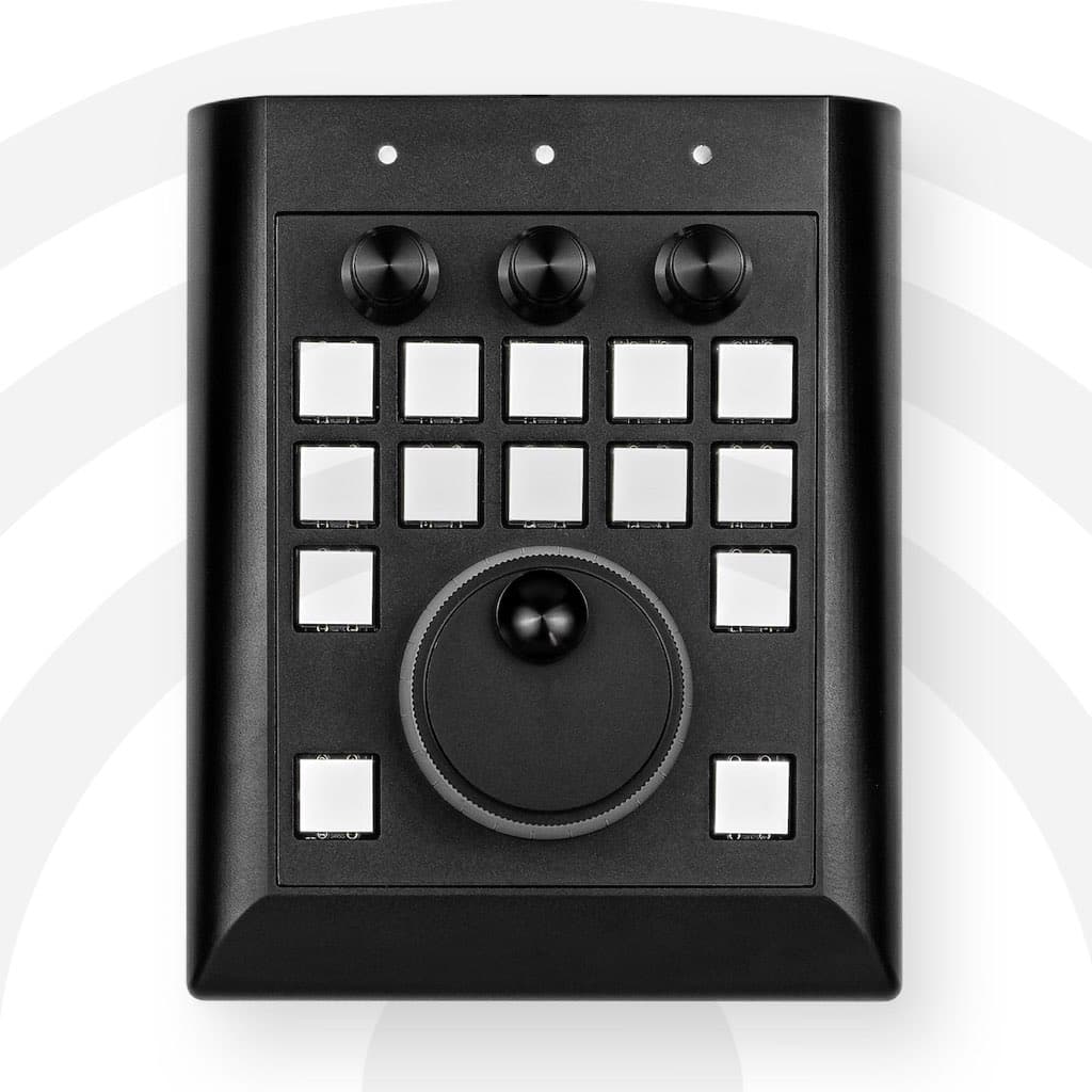 - Three black anodized encoders on top add polished notes to the panel’s appearance.