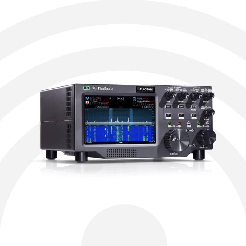 The AU-520M with its stunning 8” touchscreen display and ergonomic controls deliver a high-performance SDR with a traditional radio interface—no PC required.