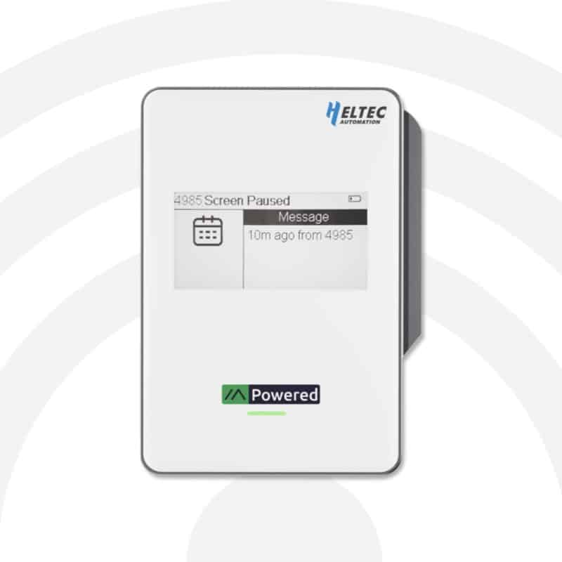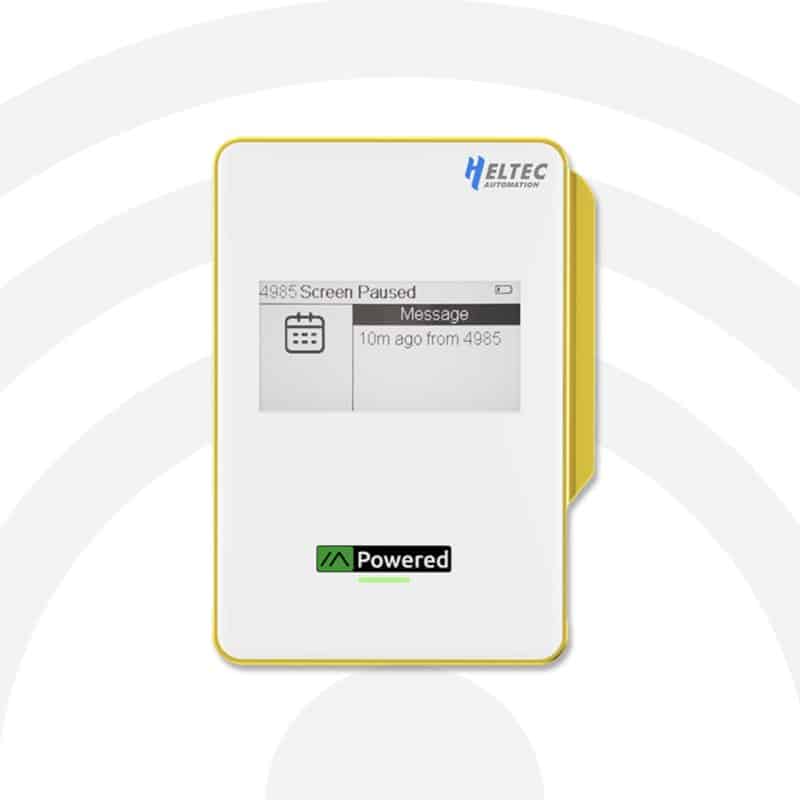 The 2.13″ e-ink display shows battery status and Meshtastic information clearly, even in bright sunlight,