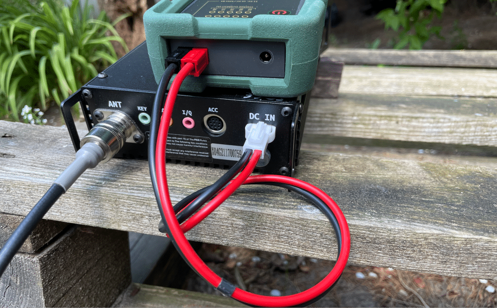 Soft copper cable with a diameter of 2 x 1.5 mm2. The cable on one side is terminated with a PowerPole (Anderson) connector and a Xiegu G90 DC connector in the other end. Length 50cm.