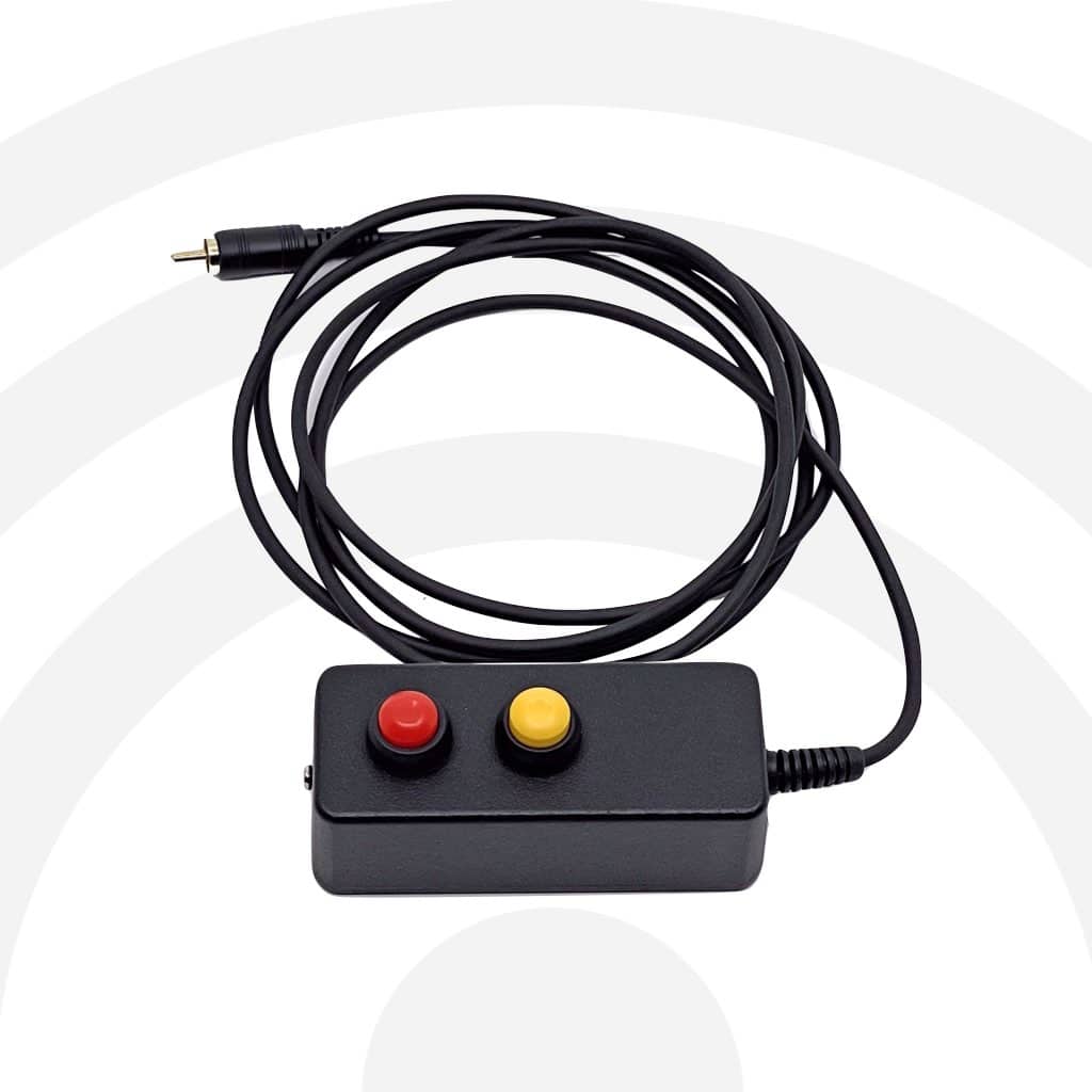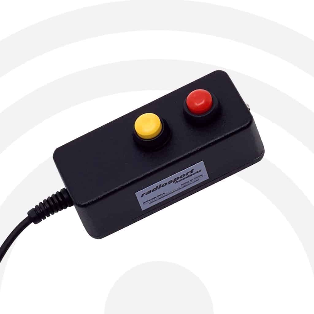 radiosport Hand Operated PTT Switch, Dual Action with Momentary and PushOn/PushOff buttons, powder coat finish, with rugged fiber reinforced cabling, 2,13 meter length. An optional 1.5 meter extension cable is available for remote/rack mount installations.