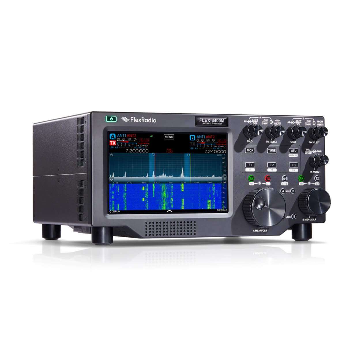 The FLEX-6400M from FlexRadio integrates all FLEX-6400 capabilities with a stunning 8-inch 1920 x 1200 IPS WUXGA touchscreen display and ergonomic controls to deliver a high-performance Software Defined Radio with a traditional radio interface. It delivers unmatched band awareness from an integrated display while providing an external connection for an HDMI compatible 1920 x 1200 resolution monitor for maximum spectral visibility. Influenced by top contest/DX operators, its symmetrical and independent dual VFO controls are strategically placed to provide maximum productivity for all types of operation. It’s completely self-contained so just plug it in and operate — no PC, network, or learning curve required.